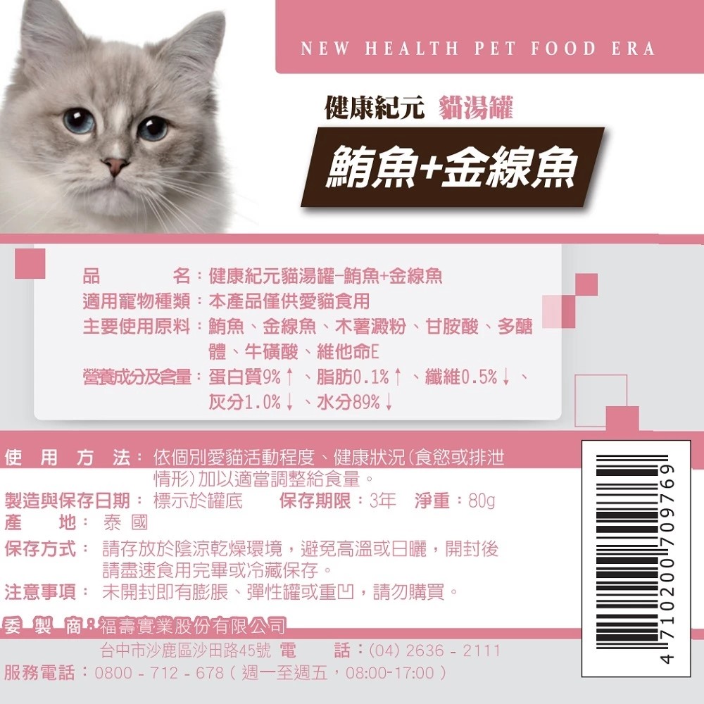 12/10-12/25 健康紀元 鮪魚+金線魚(貓)/無鬚鱈(貓) 3件$66(不得與折價券/折扣碼併用)