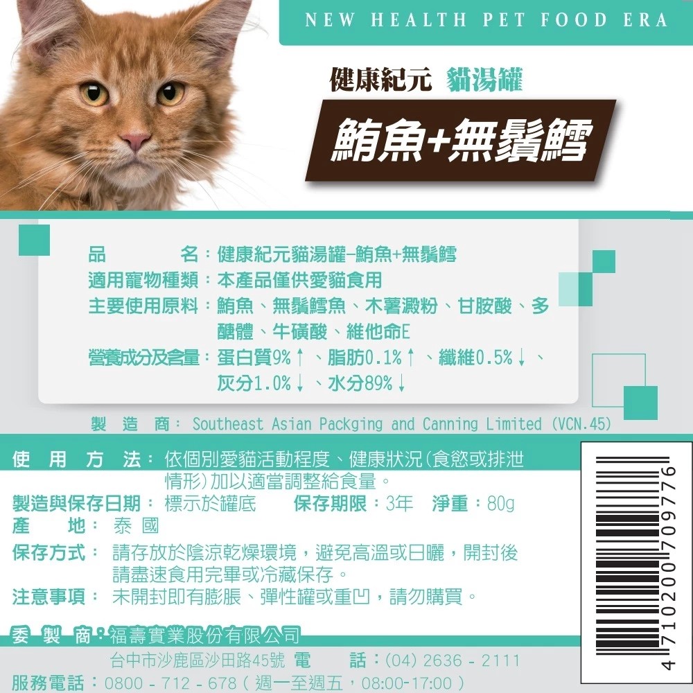 12/10-12/25 健康紀元 鮪魚+金線魚(貓)/無鬚鱈(貓) 3件$66(不得與折價券/折扣碼併用)