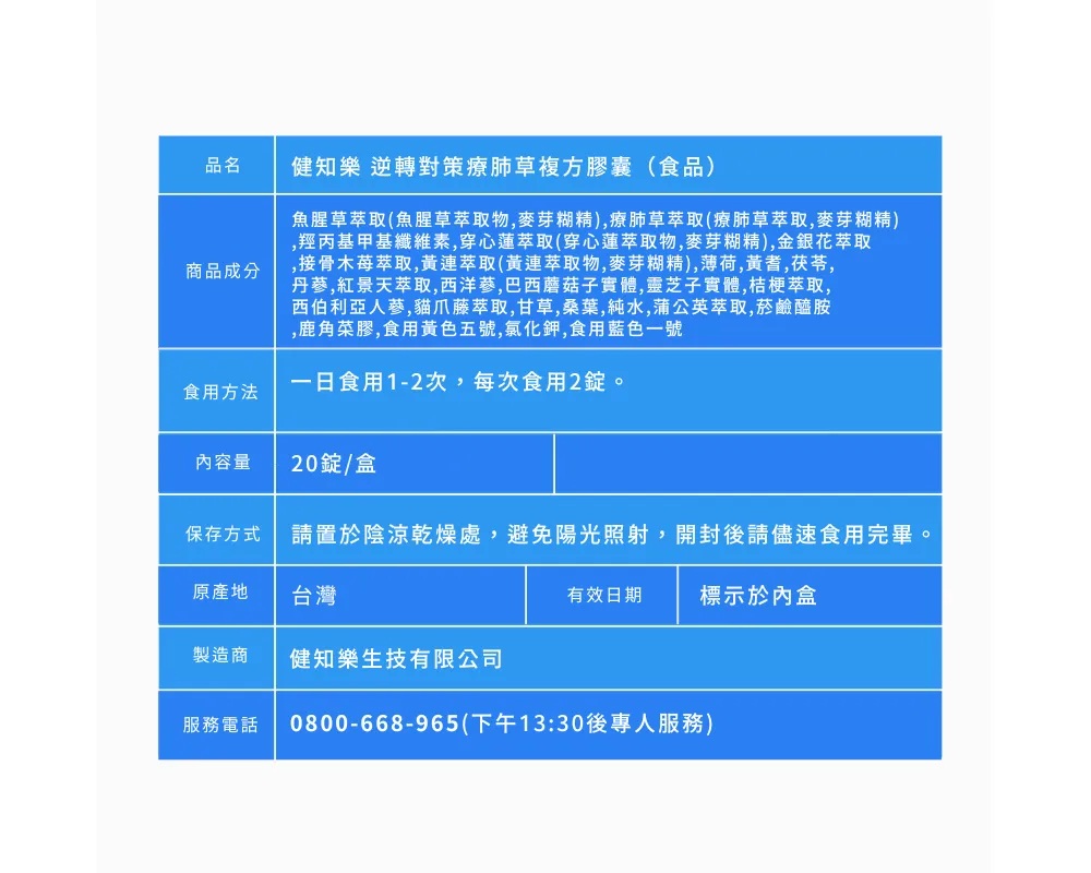 [佑全保健藥妝]逆轉對策療肺草複方素食膠囊 20粒/盒