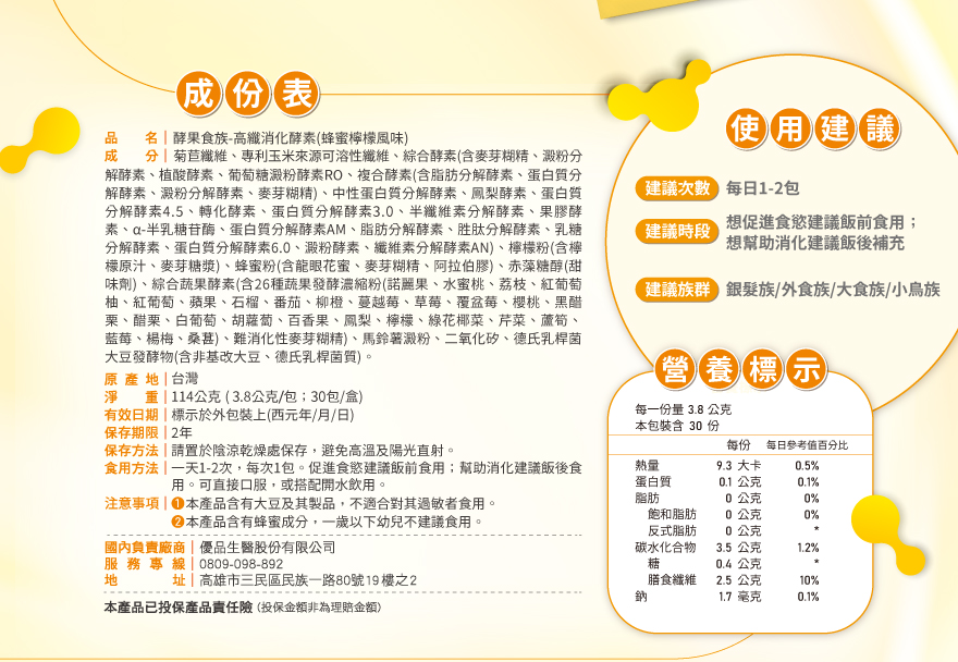 [優品生醫]酵果食族-高纖消化酵素(蜂蜜檸檬風味)