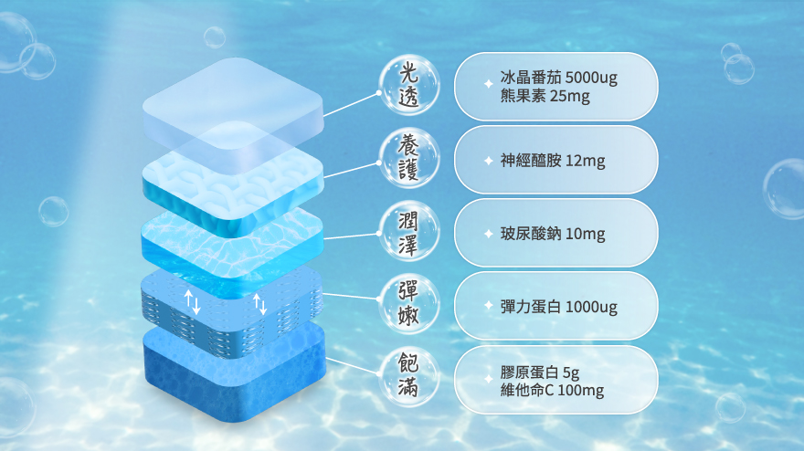 |養顏美容|添加彈力蛋白+C+熊果素+冰晶番茄