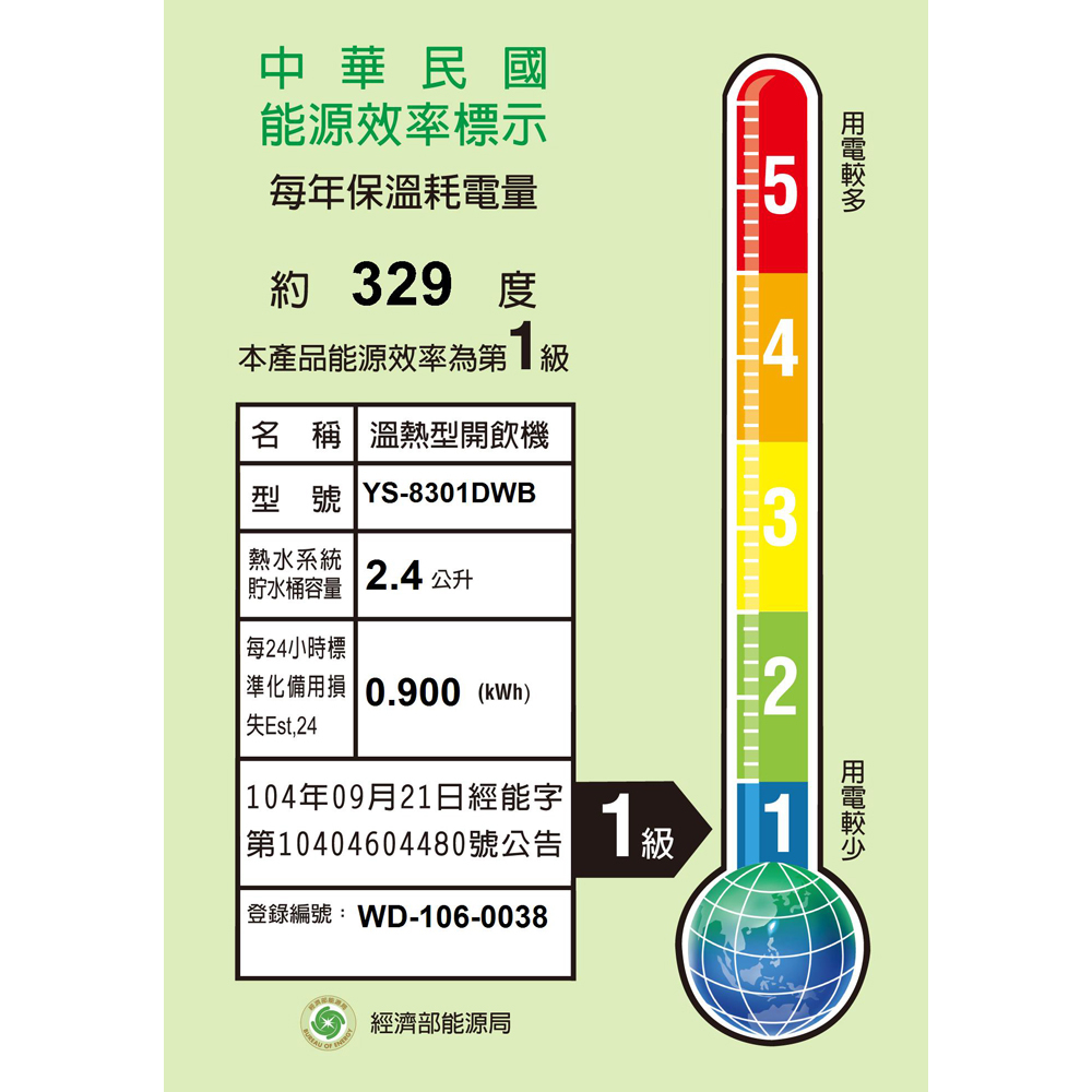 元山 觸控式濾淨不鏽鋼溫熱開飲機 YS-8301DWB