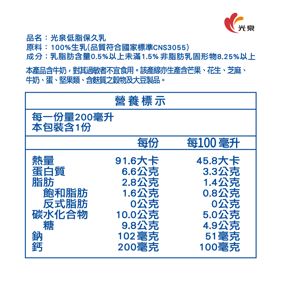 ◎品牌:光泉 ◎規格: 200ml毫升 x 1 x 6Bottle瓶