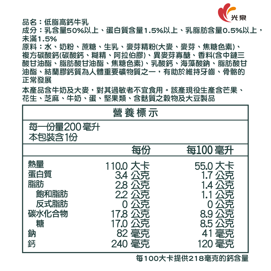 ◎品牌:光泉 ◎規格: 200ml毫升 x 1 x 24Bottle瓶