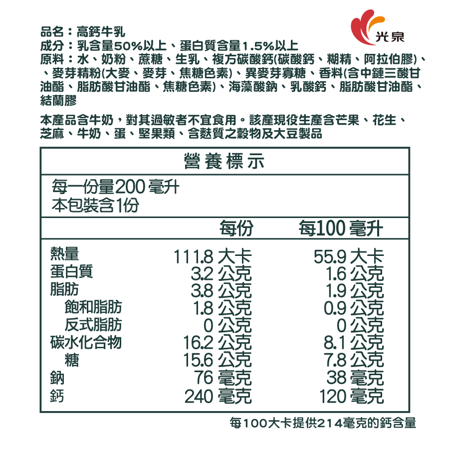 ◎品牌:光泉 ◎規格: 200ml毫升 x 1 x 24Can罐