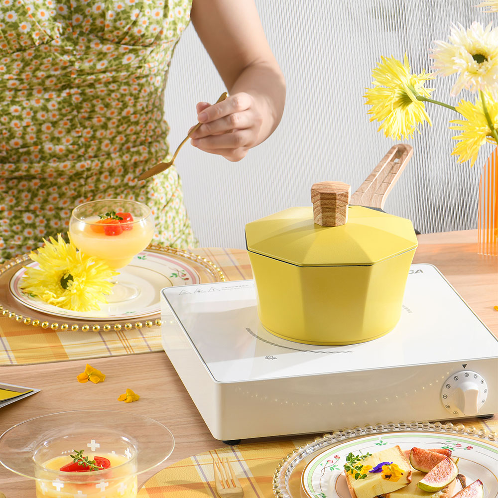 【八角維京】奈米銀抗菌加工 不沾鍋 18cm奶鍋 IH全對應 贈原廠抗菌鋁蓋 (檸檬黃)