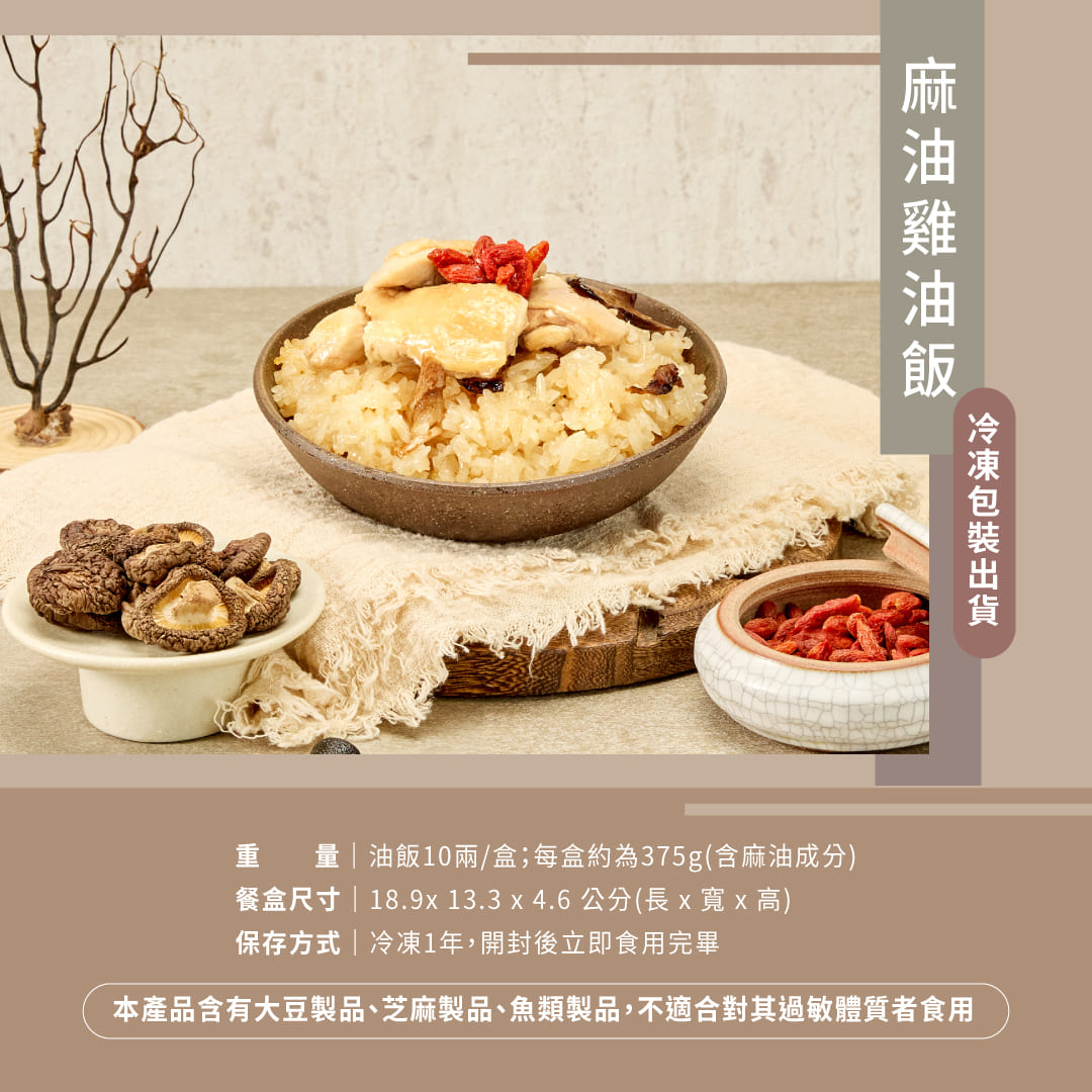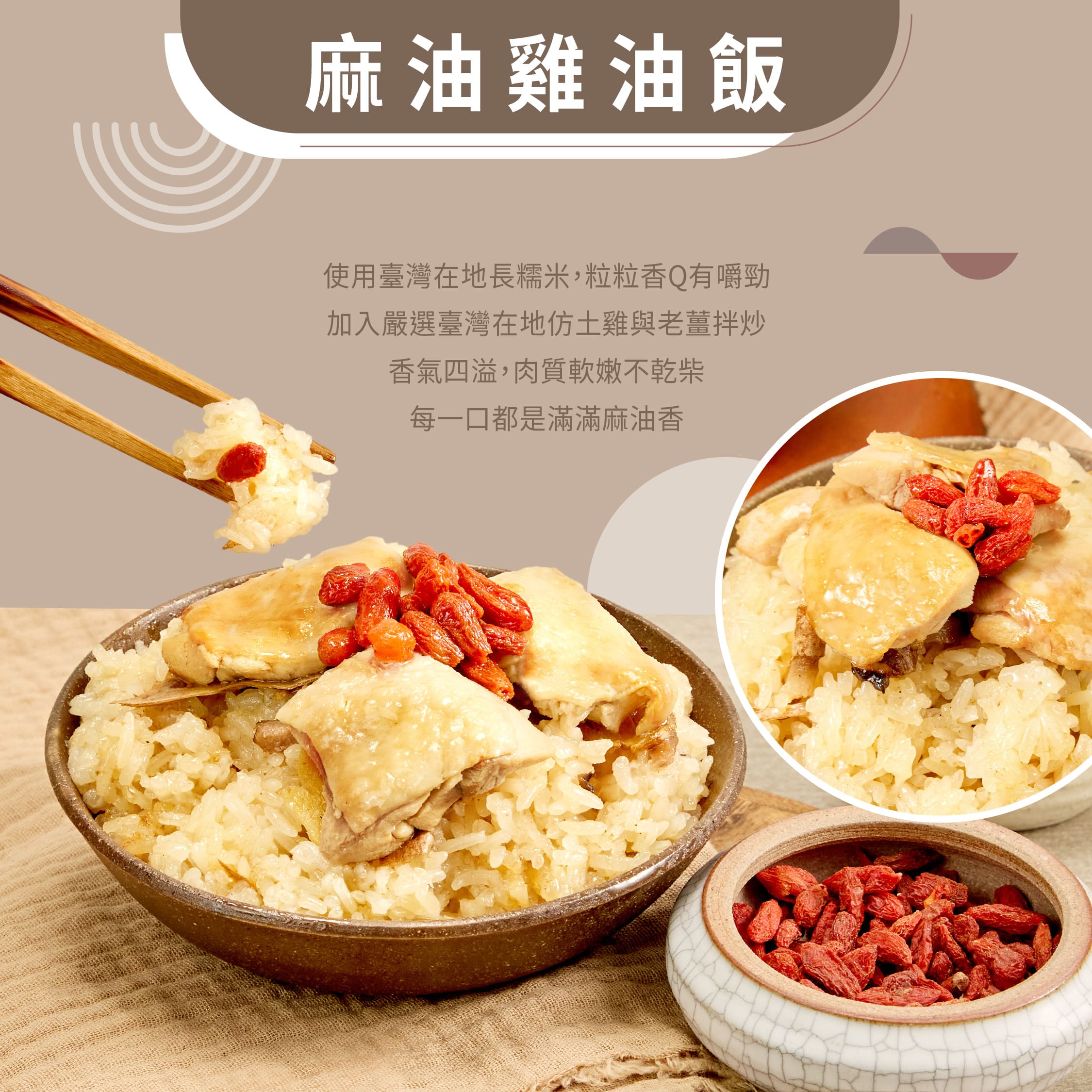 使用臺灣在地長糯米,粒粒香Q有嚼勁加入嚴選臺灣在地仿土雞與老薑拌炒香氣四溢,肉質暖嫩不乾柴,每一口都是滿滿麻油香