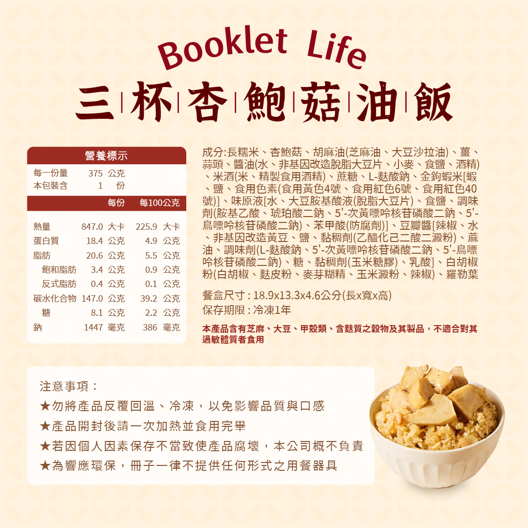 【冊子生活購】三杯杏鮑菇油飯375g