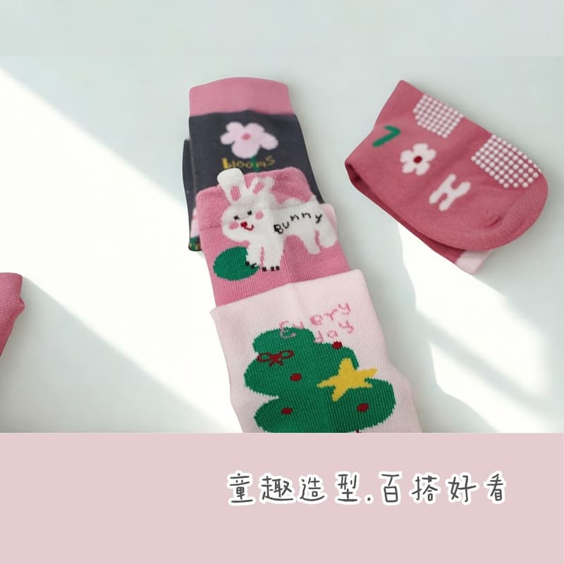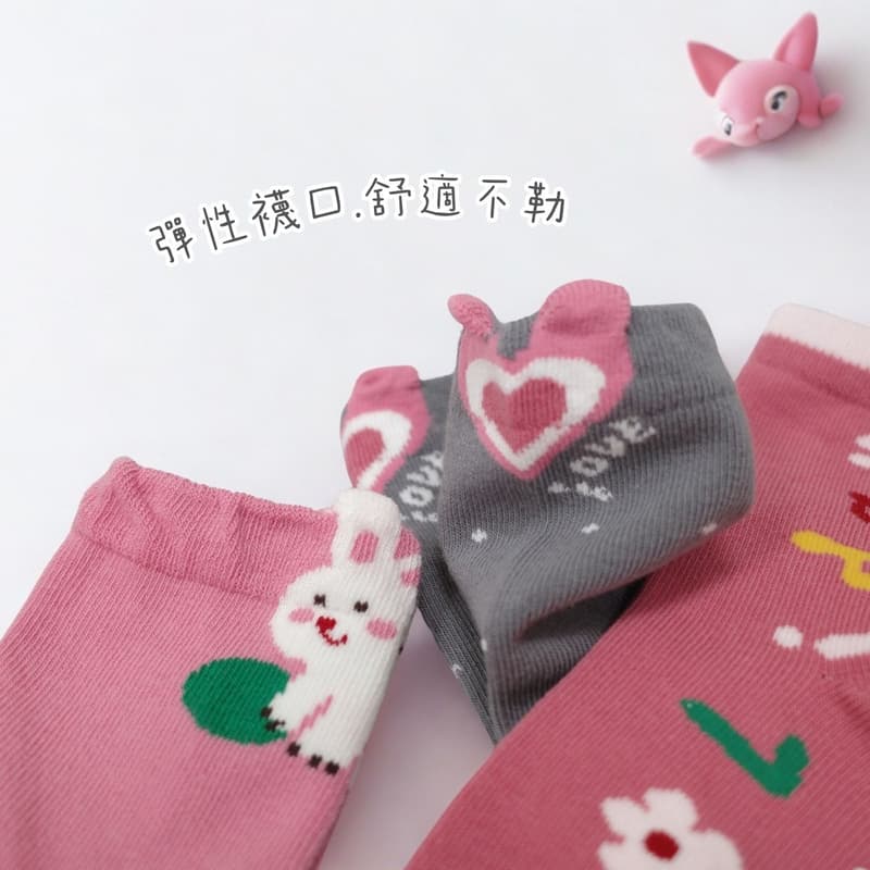[凱美棉業] 10雙 隨機出色 純棉止滑童襪 甜美粉色款 花花童襪 卡通童襪 可愛襪 男童女童襪 兔兔 17-21cm