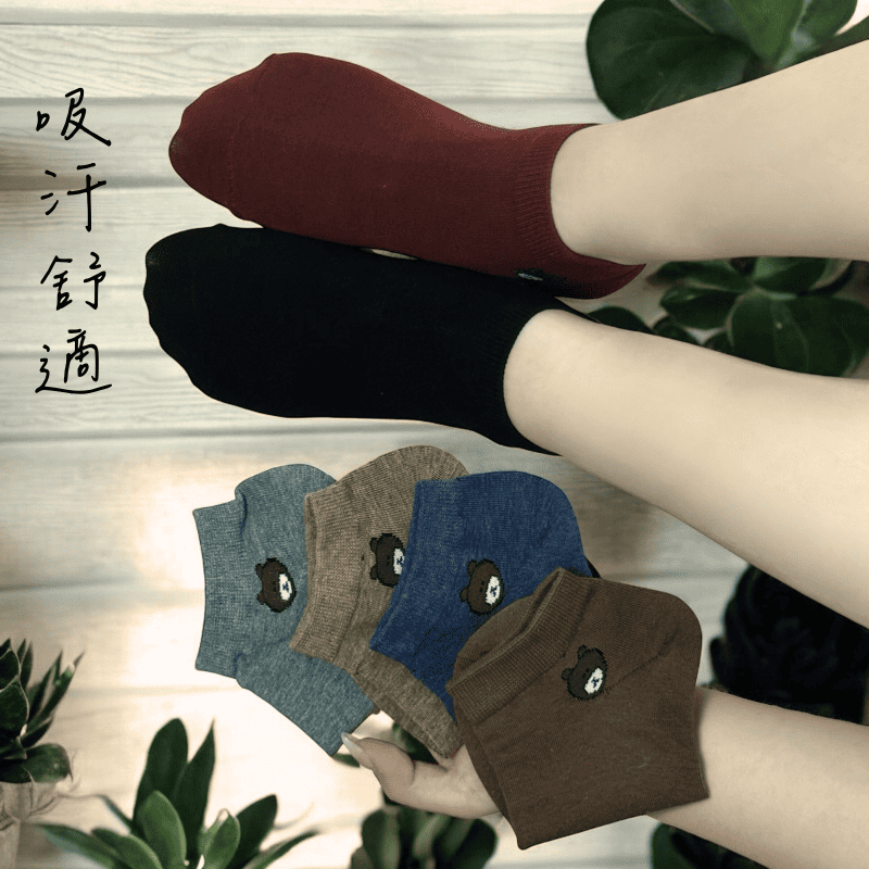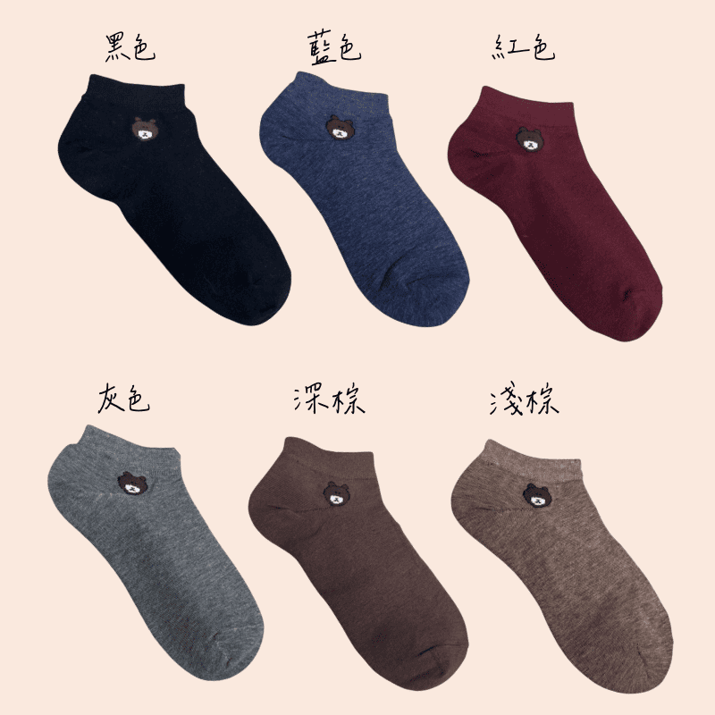 [凱美棉業] 8入 隨機出色 MIT台灣製 純棉短襪熊熊款 純色短襪 小圖短襪 可愛小熊 22-26cm