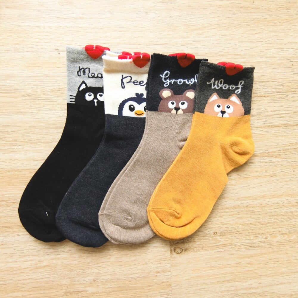 [凱美棉業] 8雙 隨機出色 MIT台灣製 精緻設計純棉女襪 雙色動物款