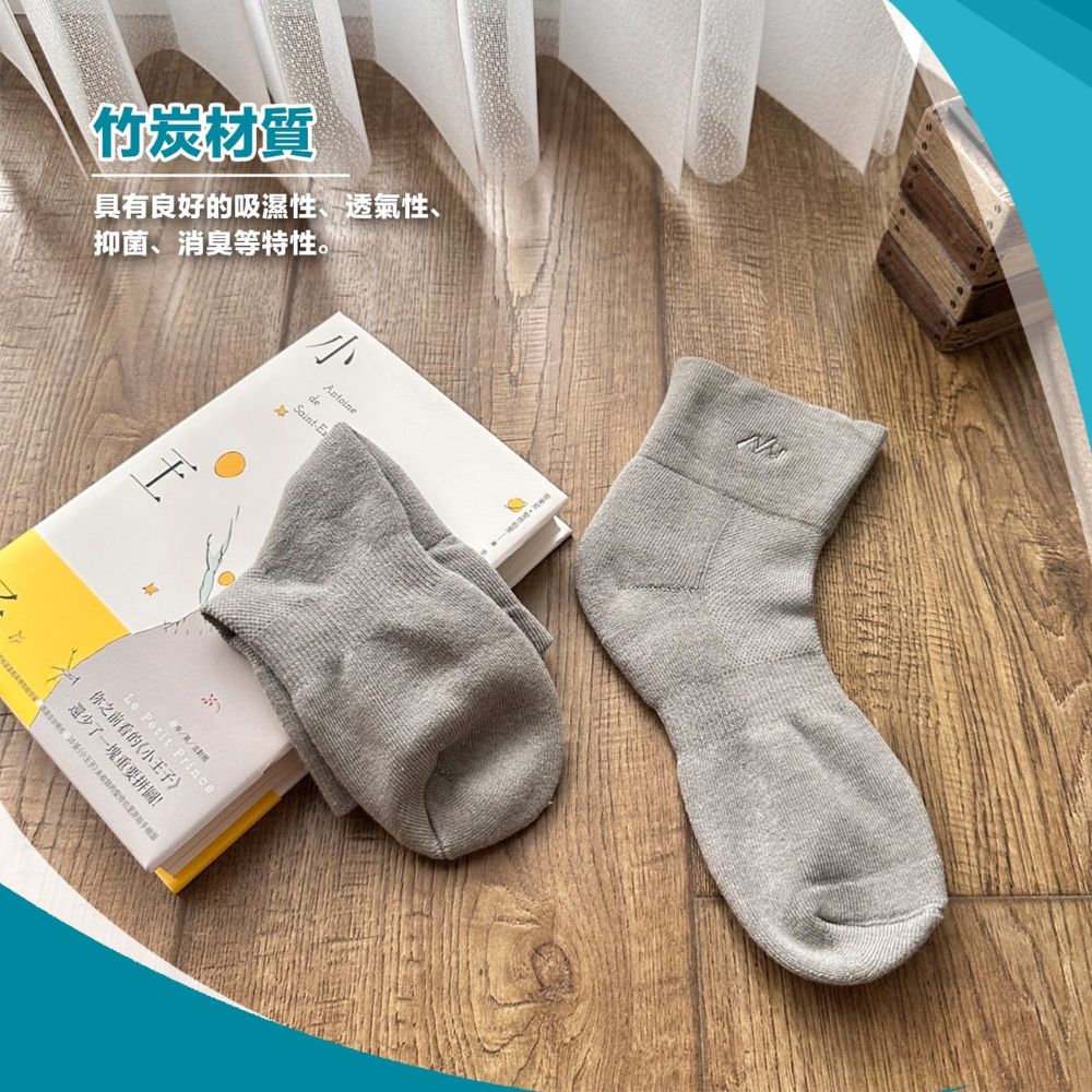 全襪採用竹炭紗針織萊卡彈性纖維,具有超強伸展力與回復力,即使襪子穿再久,洗再多次也不易變形。上班長時間穿不臭腳,也可以做運動襪使用