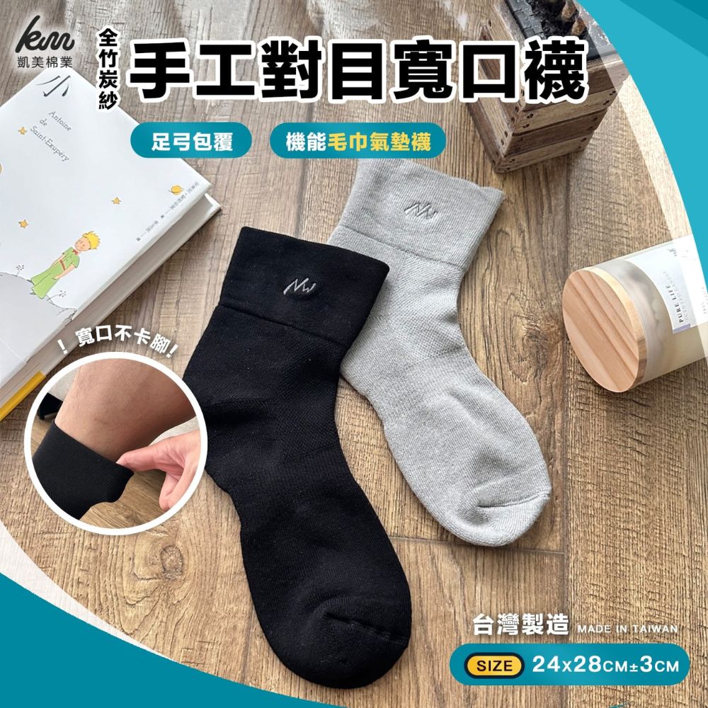[凱美棉業] 2雙組 黑色 MIT台灣製 全竹炭紗手工對目寬口襪 運動襪 機能襪