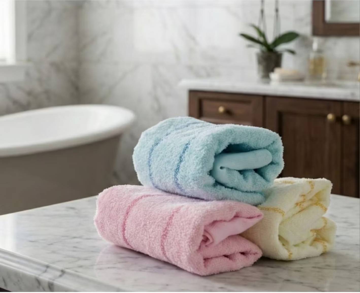 1. 新毛巾請勿直接使用,應將新毛巾用水洗淨後再開始使用。