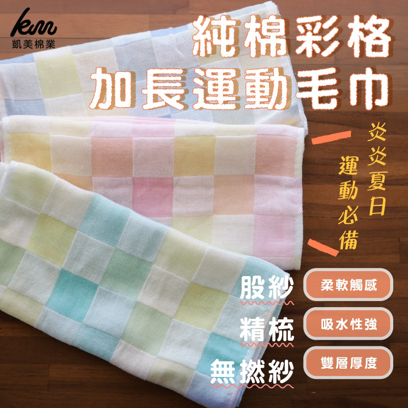 [凱美棉業] 6入組 隨機出色 純棉紗布色紗 彩格加長運動毛巾