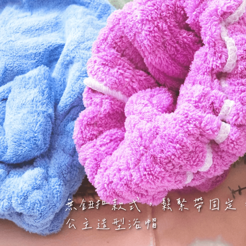 ●無鈕扣款式,鬆緊帶固定,公主造型浴帽