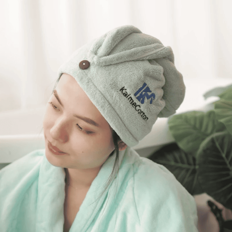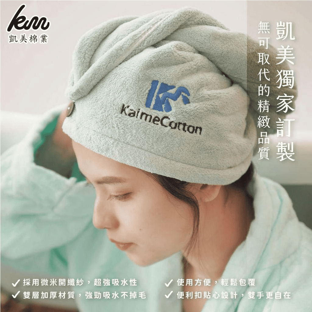 凱美獨家推出—頂級微米開纖紗 加厚超強吸水浴帽—