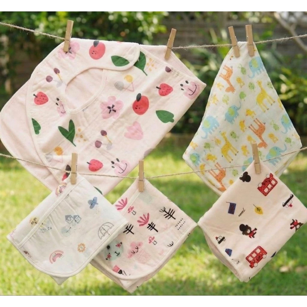 [凱美棉業] 2入組 頂級大人純棉紗布防水圍兜 貼心設計 精緻品質 細緻印花