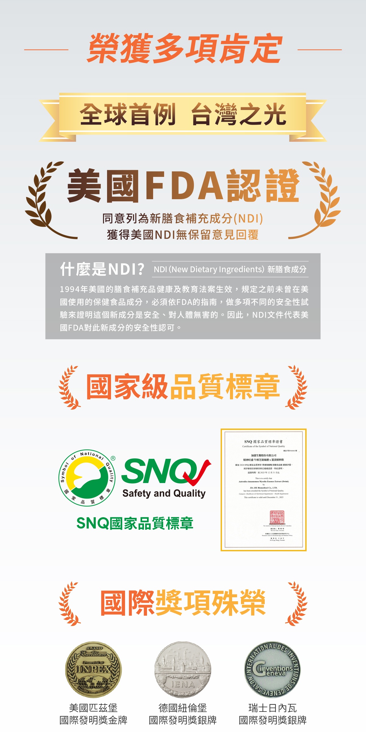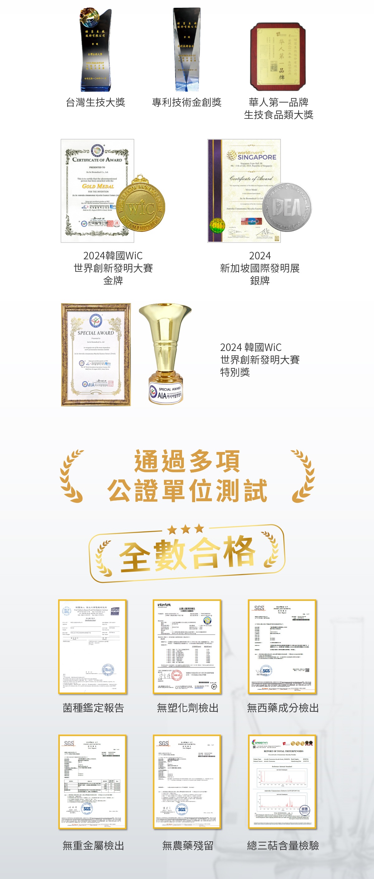 膠原胜肽、異麥芽寡糖、綜合莓粉(濃縮果汁(紅石榴濃縮汁、草莓濃縮汁、蔓越莓濃縮汁、野生藍莓濃縮汁、接骨木莓濃縮汁)、麥芽糊精、紅甜菜汁)、NMN-PlusR酵母粉(麥芽糊精、酵母粉(含NMN、輔酵素Q10)、D-核糖)、SamquinolR蔬果醱酵粉(麥芽糊精、青梅、桑葚、櫻桃)、PUREWAY-CR複合維生素C(抗壞血酸(維生素C)、柑橘萃取物、米糠粉)、流行鏈球菌發酵物(含透明質酸鈉)