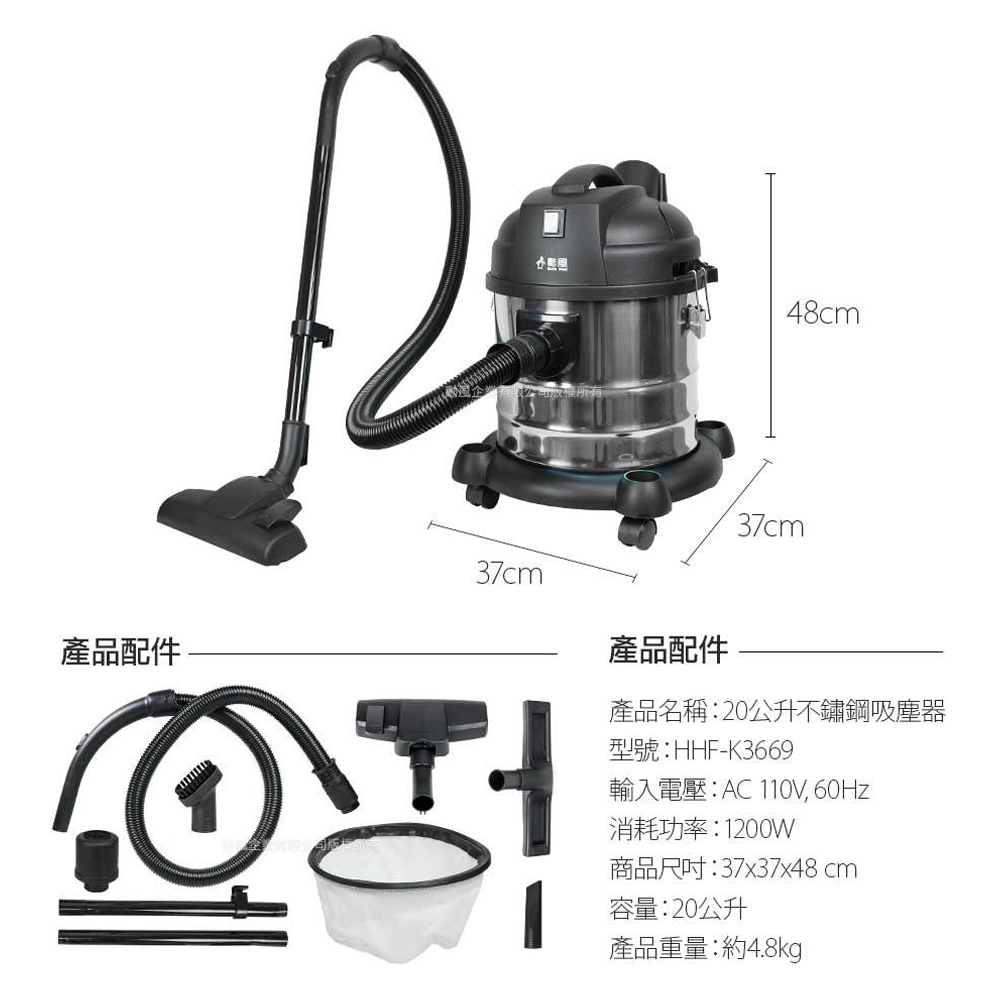 勳風 20公升乾濕兩用不銹鋼吸塵器 HHF-K3669