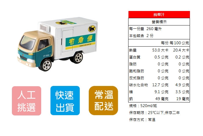 ※不加糖,不加防腐劑,純天然椰子汁直接由高溫殺菌包裝而成