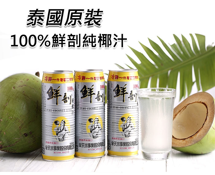 【半天水】鮮剖100%純椰汁24瓶〈無果肉/520ml/瓶/易開罐〉免運