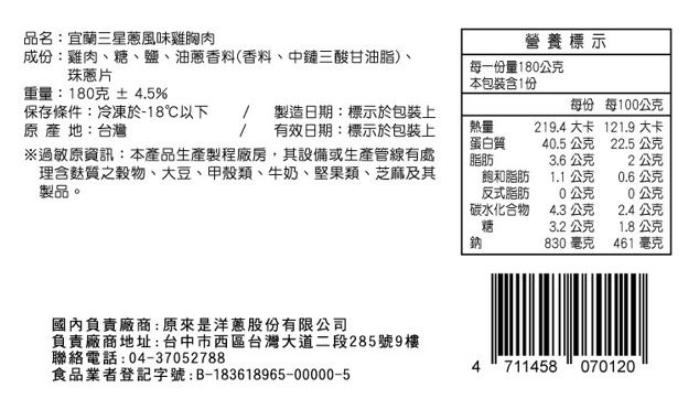 ※過敏原資訊:本產品製成產房,其設備或生產管線有處理含麩質之穀物、甲殼類、大豆、牛奶、堅果類、芝麻及其製品