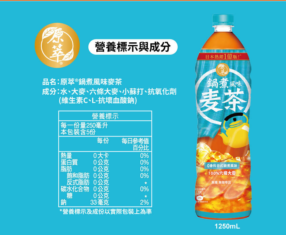 原萃鍋煮風味麥茶(無糖) 1250ml