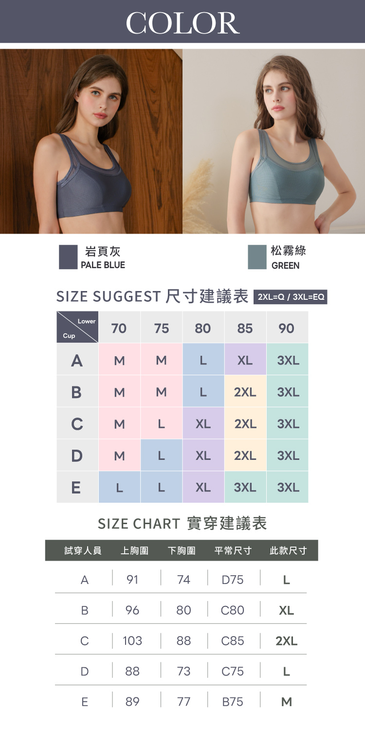 【Clany可蘭霓 】女力覺醒 台灣製涼感防震M-3XL無鋼圈運動內衣 加大尺碼 8080-83 松霧綠