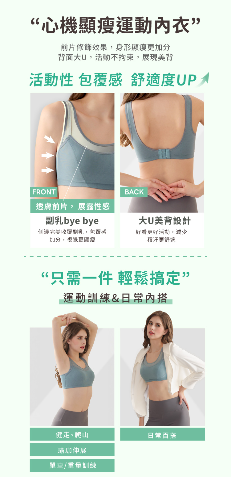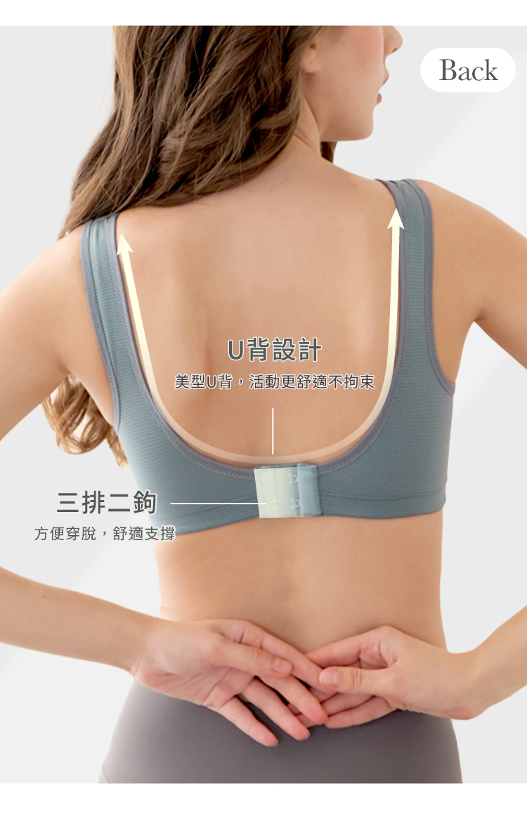 U型美背x三排二鉤設計,方便穿脫穩定貼合
