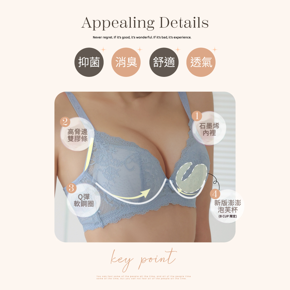 【Clany可蘭霓】澎然心動 石墨烯抑菌軟鋼圈集中包覆BCD蕾絲內衣 晴空藍 8063-51