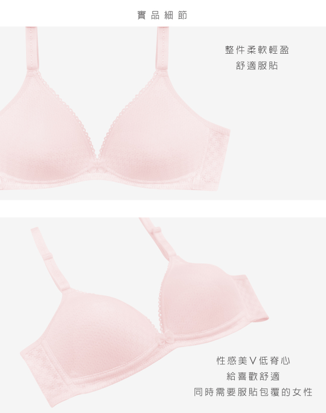 【Clany可蘭霓】 舒適V曲線無鋼圈台灣製輕柔 AB內衣 粉紅甜心 6607-31