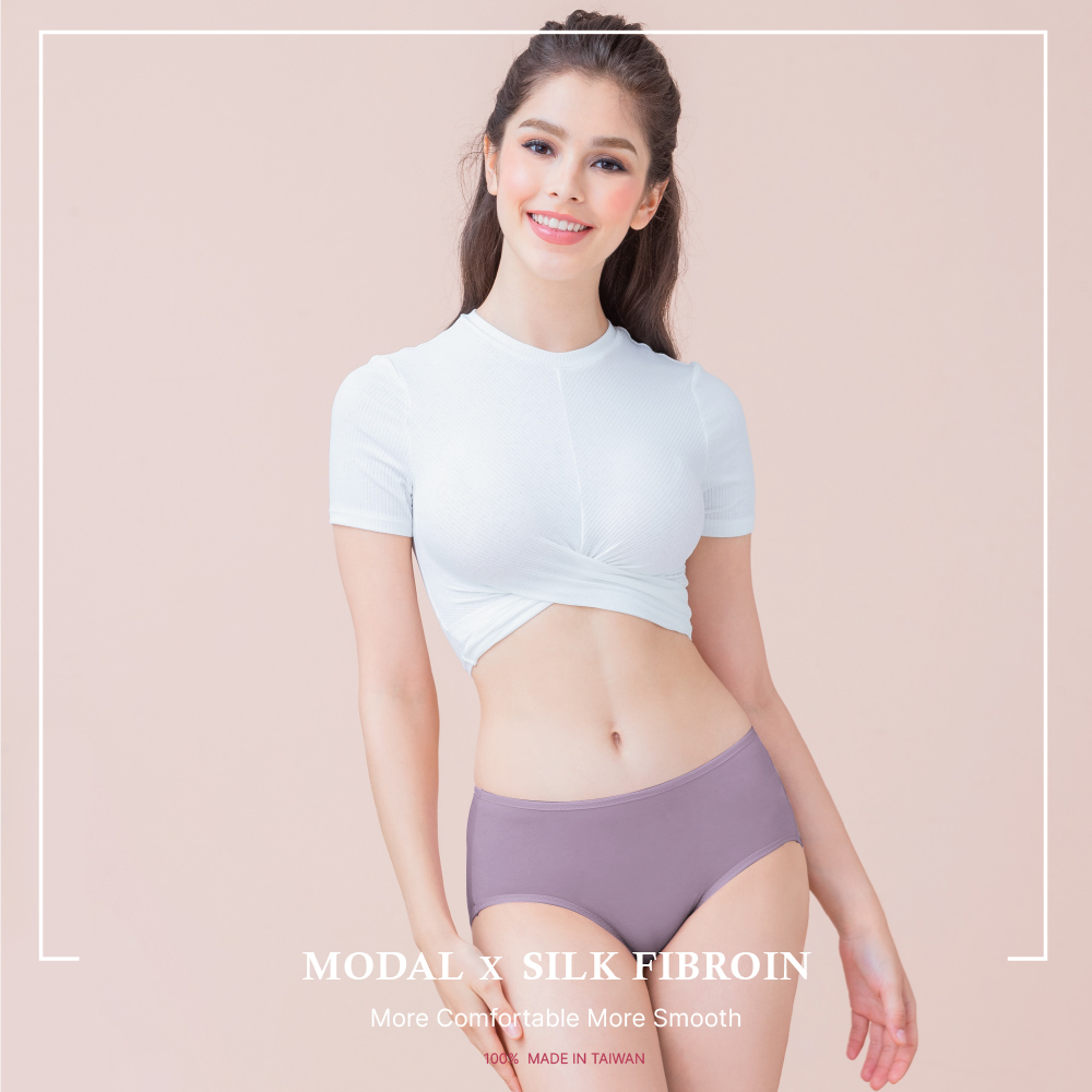 【Clany可蘭霓】台灣製絲蛋白美膚內褲 |莫代爾親膚透氣低敏・中腰女內褲 M–XL 薰衣草紫 2152-92