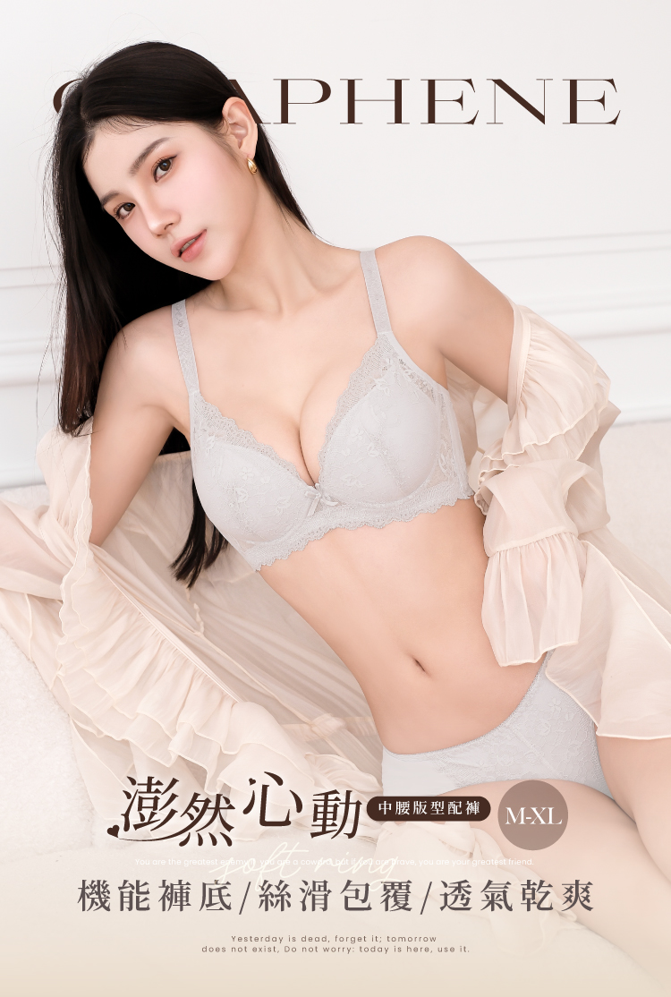 【Clany可蘭霓】澎然心動 石墨烯抑菌透氣蕾絲 M-XL 中腰內褲 氣質灰 3063-61