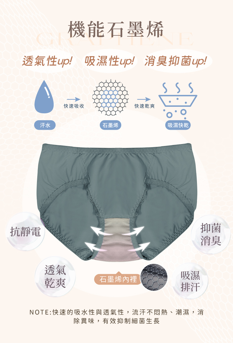 石墨烯抑菌褲底 — 有效抑菌、吸濕透氣,流汗不悶不尷尬,拒絕異味!