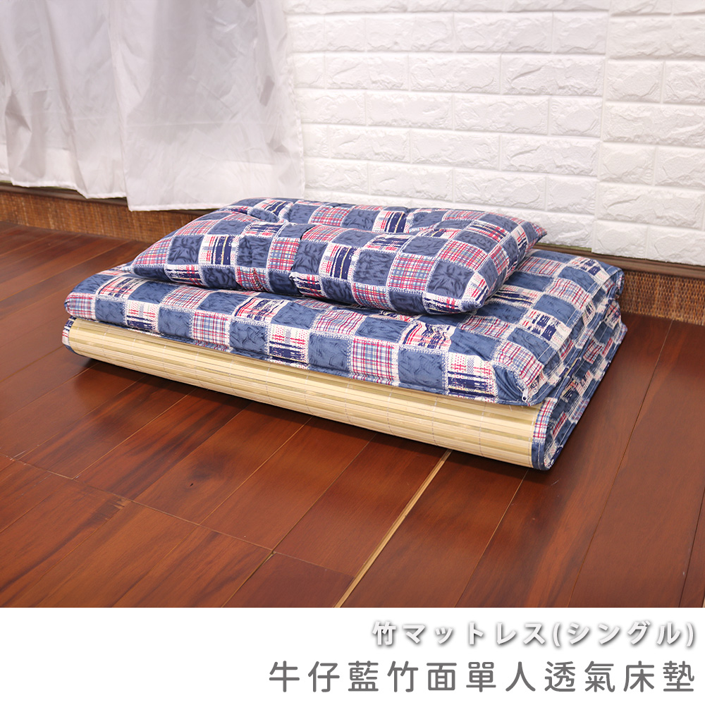 [台客嚴選] 牛仔藍竹面單人透氣床墊-台灣製 薄墊 學生床墊 冬夏兩用 單人床墊
