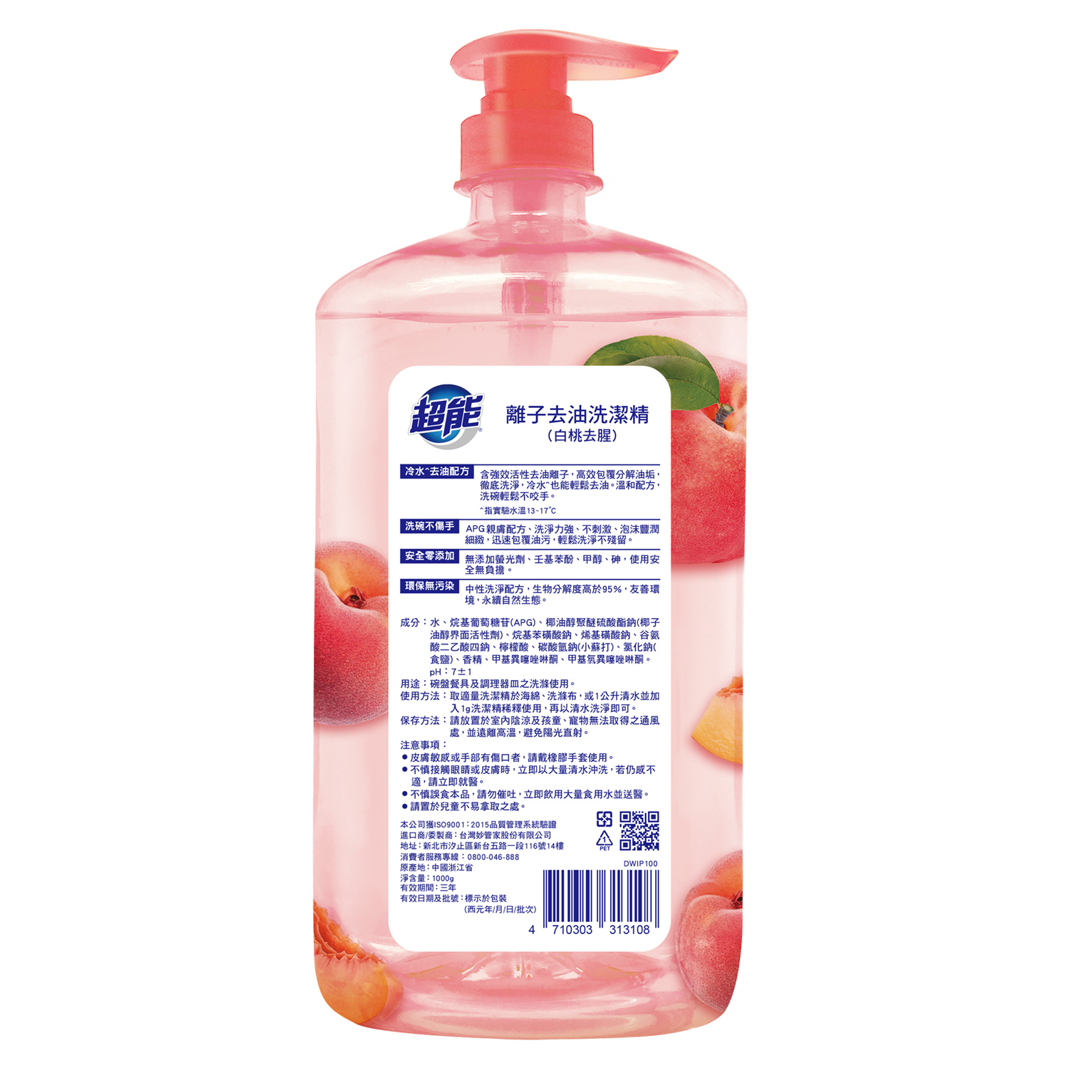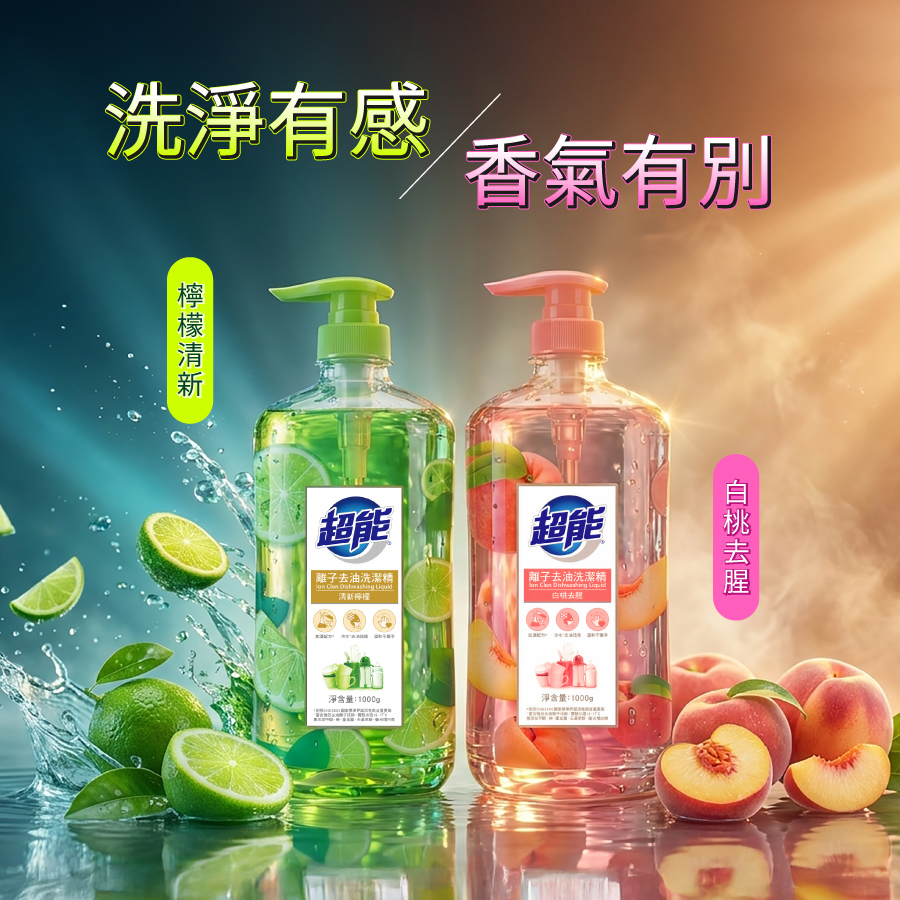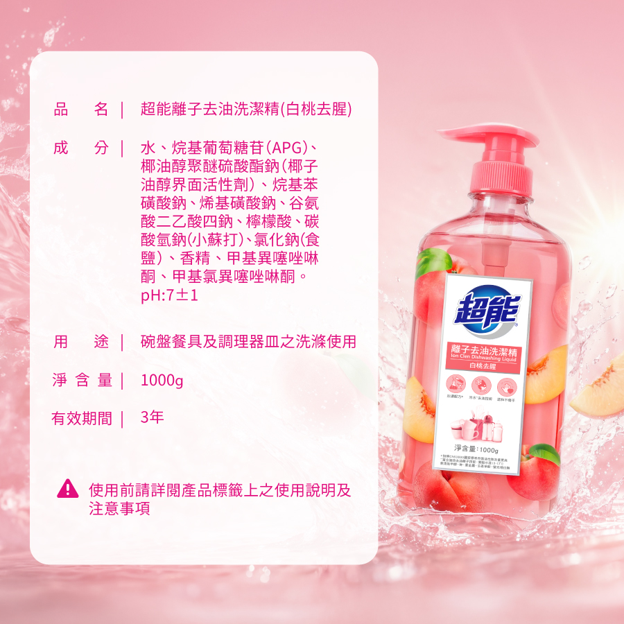 妙管家超能離子去油洗潔精-白桃去腥