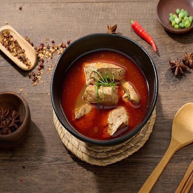 臭豆腐經過多種乳酸菌自然發酵,長時間浸泡在麻辣湯中使風味完美融入到湯頭中.