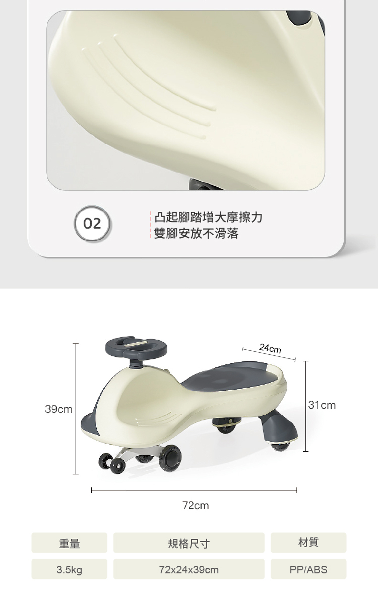 閃輪兒童扭扭車 雲母灰 靜音輪 滑步車 搖搖車 平衡車