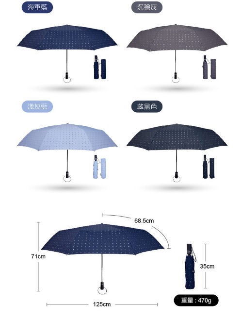 https://s-cf-tw.shopeesz.com/file/3232ee99fbd61fbac774c9b5d9d7648ahttps://s-cf-tw.shopeesz.com/file/a9b787e58cb669e5a6f0525b72249ccc【周周生活】雨傘 現貨 自動傘 傘 折疊傘 遮陽傘 陽傘 海軍船錨 摺疊傘 折疊雨傘 大雨傘 自動 晴雨傘 快速出貨品名:大振豐⚓海軍船錨 #特大自動開收傘能遮陽擋雨,還能提升你的紳士品味奈米超潑水快乾,雨再大也不怕特色:✔使用世界品質第一福懋布,遮光率高達99%✔降溫3°C~5°C,怕熱又不想曬黑最好的選擇✔137cm超大傘面,3人輕鬆包覆✔奈米級防潑水、防潑油、防汙布料,一甩即乾✔玻璃纖維傘骨,彈性好、不易斷裂,抗風加倍✔自動按鈕開關,按一下即開,按一下即收,單手操作不費力✔27吋無敵大傘面,可容納約2-3人,滿滿的安全感,雨下再大也不怕Size 產品規格【收納尺寸】35cm【傘布】福懋高機能遮光布【傘面弧度半徑】68.5cm【傘面張開直徑】125cm【傘骨數量】8k【骨架材質】玻璃纖維【重量】470克【特色】高效防曬 UPF50+ UVA<5% / 99%防潑水<br />門市資訊:周周生活地址: 高雄市苓雅區建國一路39號電話: 07-7903060FB粉絲專頁:周周生活 雨衣雨具 洋傘 毛巾專賣店#周周生活 #大振豐 #雨傘 #現貨 #自動傘 #傘 #折疊傘 #遮陽傘 #陽傘 #海軍船錨 #摺疊傘 #折疊雨傘 #大雨傘 #自動 #晴雨傘 #快速出貨