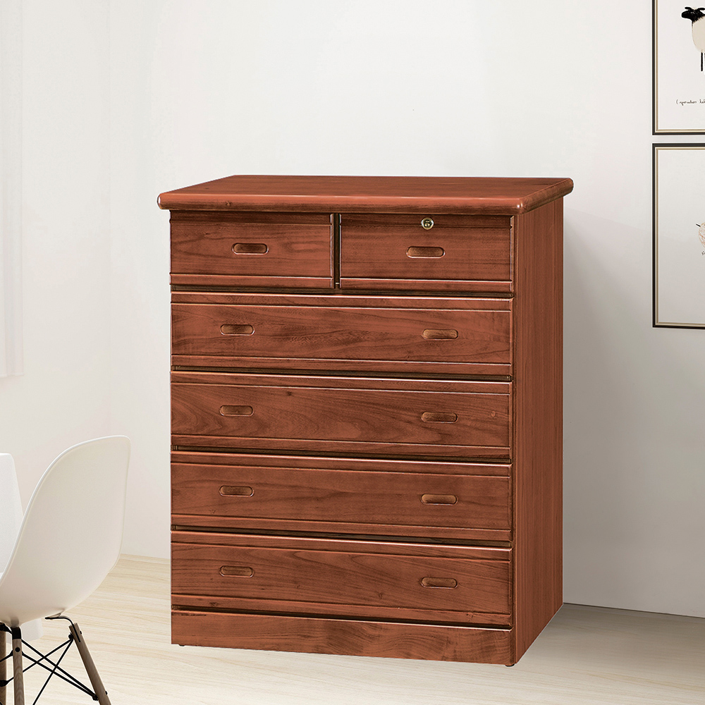 多功能收納:雙抽之一設有安全鎖,可妥善保管貴重物品;下層四大抽屜,提供充足的收納空間,讓您可以整齊地收納衣物、寢具、包包等物品;頂部平面空間可擺放燈具、相框或裝飾物,增添個人風格。