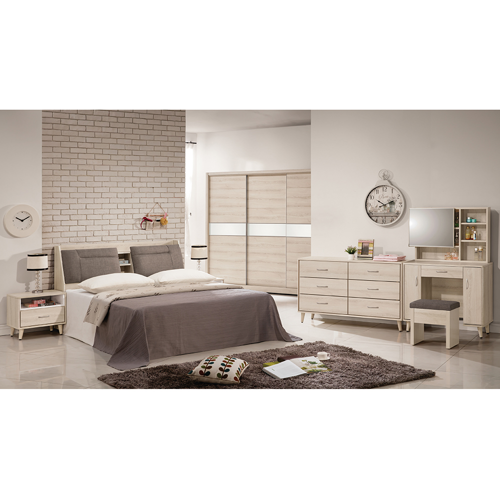 收納空間:六格抽屜大容量設計,可分類整理衣物及小物件;上方檯面可擺放燈具、香氛或裝飾物,為生活角落增添柔美的風景。