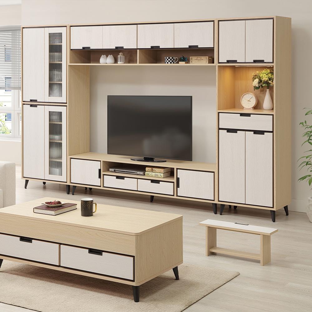 鞋櫃設計:俐落的現代極簡線條,搭配溫潤的淺橡木與暖白色雙色木紋,營造出清新的北歐風格。暖光開放展示區,提升了整體的精緻度與溫馨感;高腳懸空設計賦予輕盈感,同時兼顧清潔便利性。