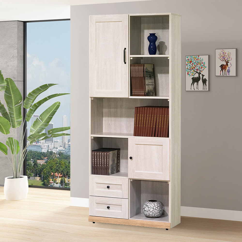 【唯熙傢俱】查理白橡色2.7尺書櫃