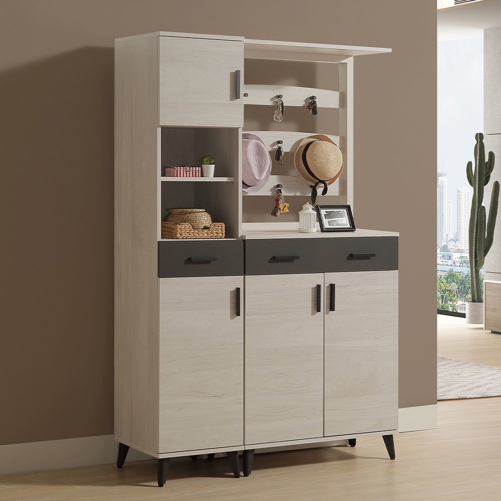 【唯熙傢俱】米可橡木白4尺鞋櫃
