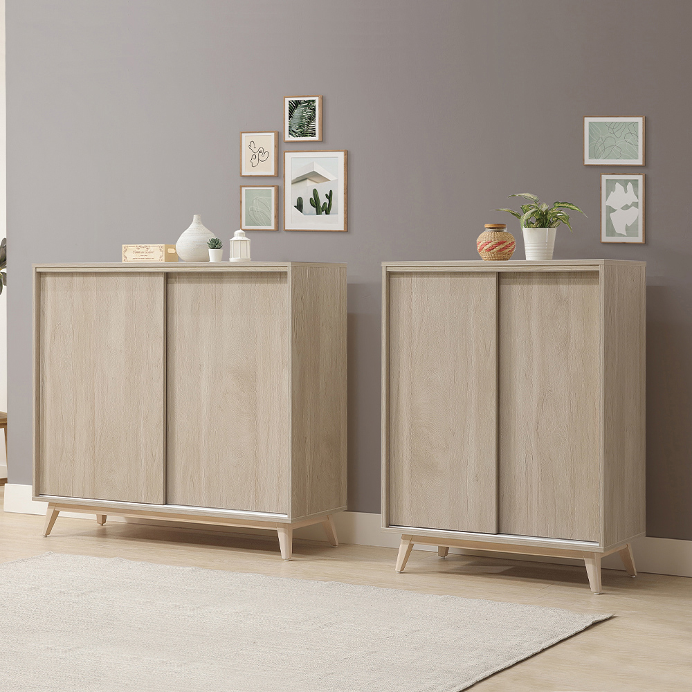 外觀設計:外觀採自然柔和的橡木色木紋,搭配底部的高腳設計,視覺輕盈且放大空間感,同時留出離地空間,方便掃地機器人清潔或放置常穿拖鞋,兼具美感與實用。