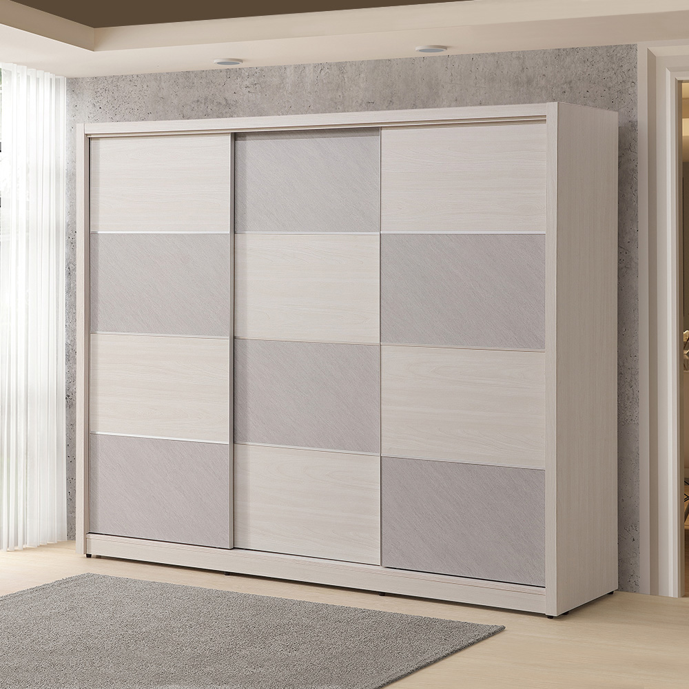 【唯熙傢俱】斯月橡木白8x7尺滑門衣櫃