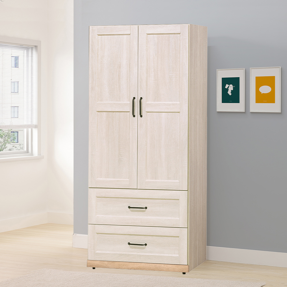 【唯熙傢俱】查理白橡色2.6尺抽屜衣櫃