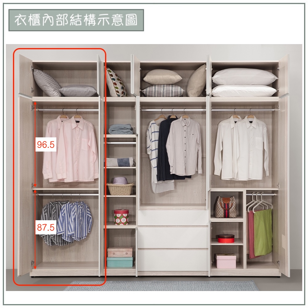 【唯熙傢俱】紀薇橡木雙色2.6x8尺雙吊衣櫃