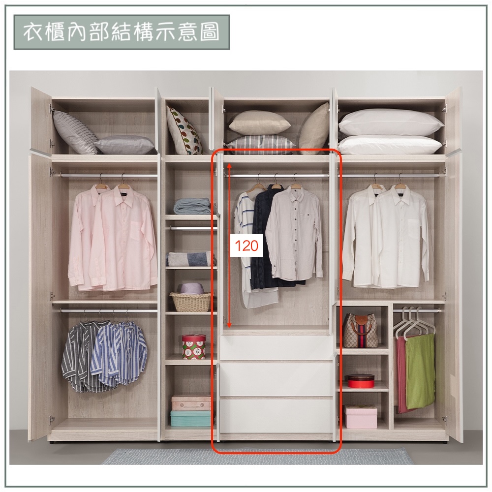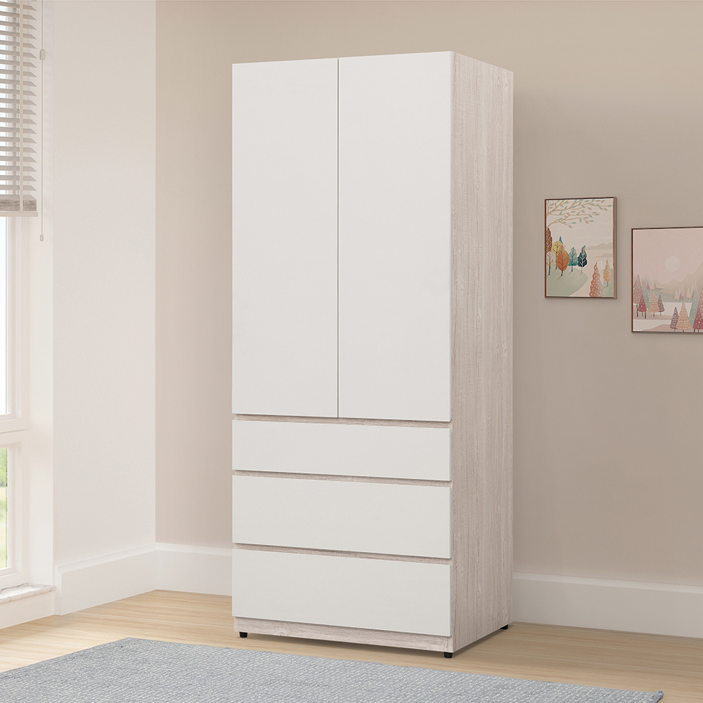 【唯熙傢俱】紀薇橡木雙色2.6尺抽屜衣櫃